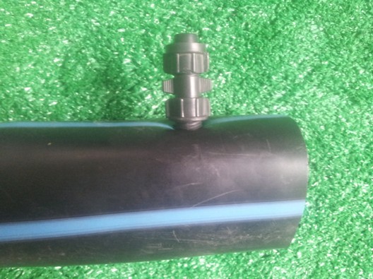 1.在PE薄壁水带上确定好需要连接旁通的位置。