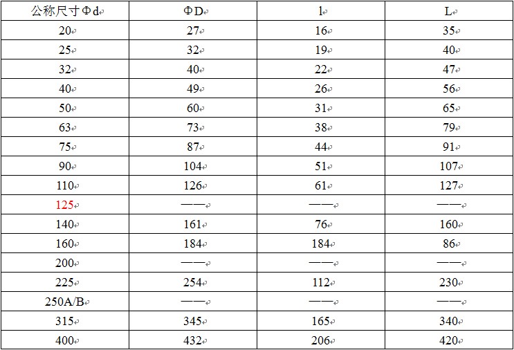 其中“ΦD”表示管件公称外径,“Φd”表示管件公称内径,“L”管件长度,“l”表示管件承插口长度,,1.0MPa=10公斤