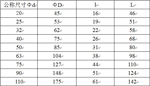 其中“L”管件长度,“l”表示承插口长度,“Φd”表示管件公称内径,“ΦD”管件公称外径,1.0MPa=10公斤