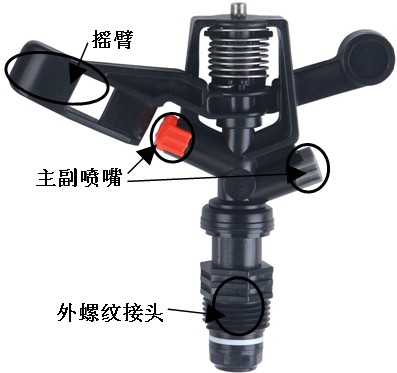 1. 摇臂、转轴,保证喷头运转平稳,震动小,更耐化肥和农药腐蚀。