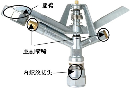 1. 摇臂、转轴,保证喷头运转平稳,震动小,更耐化肥和农药腐蚀。