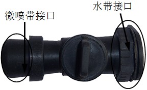 产品介绍:微喷带旁通阀是一种常用的滴灌配件,主要用于连接PE主水带与微喷带,使每条微喷带的水流量可以单独控制。