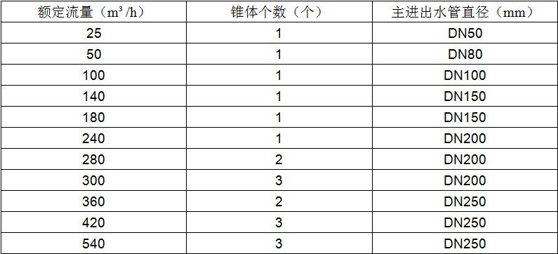 其中“直径DN50mm”表示离心过滤器主进出水管直径50mm,“流量25m3/h”表示离心过滤器额定流量25m3h
